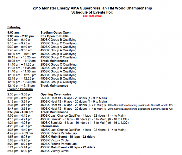 9:00 - 12:30 p.m. ET (9:00 to 12:30 p.m. local) - www.supercrossonline.com
