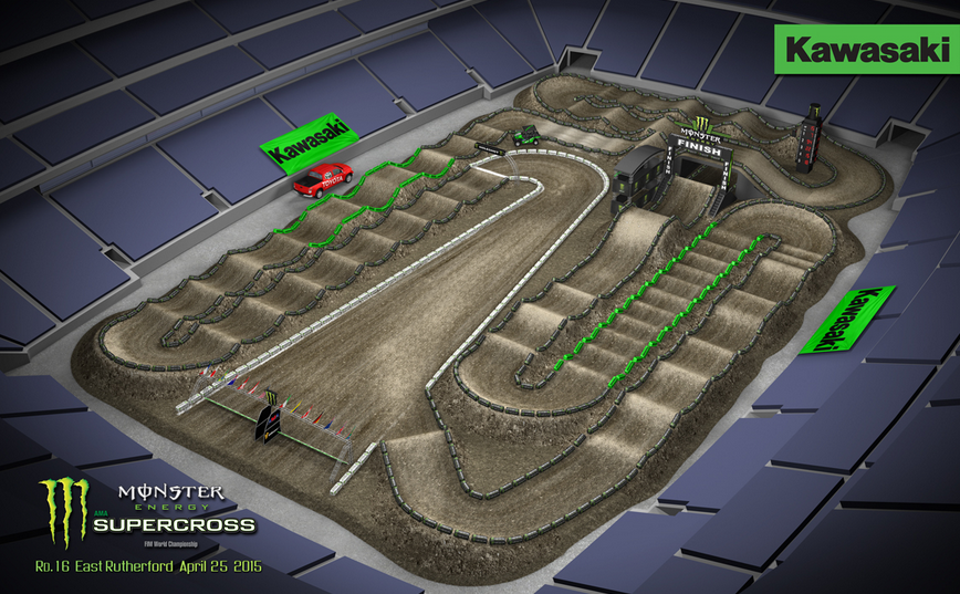 Round 16 of Monster Energy Supercross, an FIM World Championship, takes place this Saturday, April 25, in East Rutherford, NJ. Action kicks off with Andy Bowyer and Jim Holley hosting qualifying live from the MetLife Stadium beginning at 9:00 a.m. ET on Supercrossonline.com. FOX will carry live coverage of round 16 beginning at 3:00 p.m. ET.