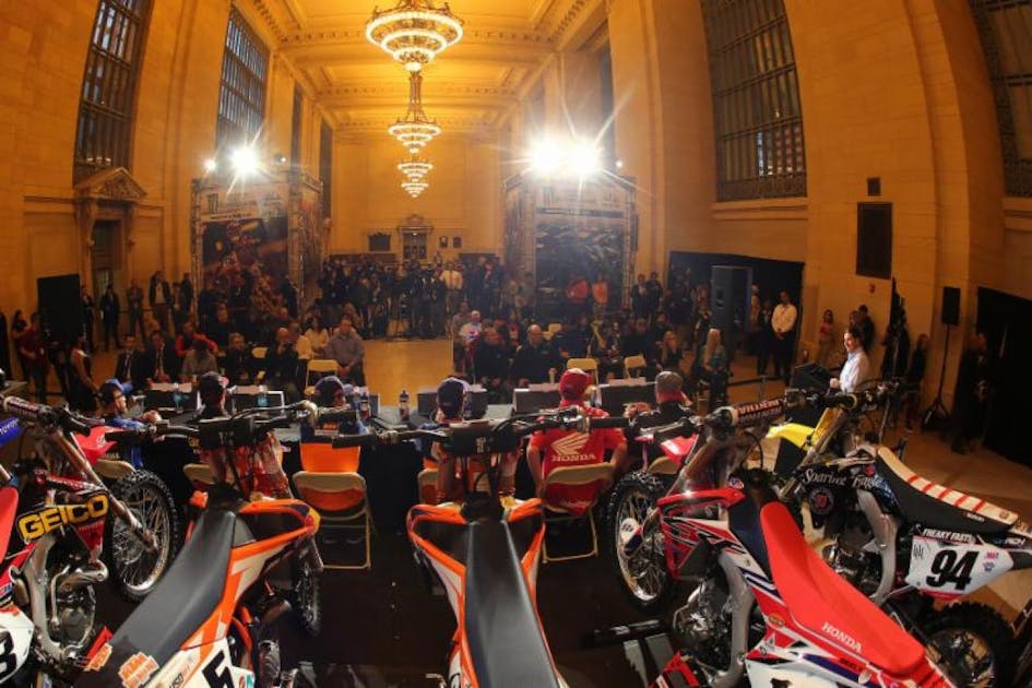Grand Central Terminal and dirt bikes go together like … um, wait, they don’t! But yesterday, Feld Entertainment pulled some serious strings and arranged for the Monster Energy Supercross press conference to be held at the iconic building, just inside the Vanderbilt entrance hall. The Vanderbilt Hall is located just off 42nd Street in the absolute heart of New York City. Folks, it does not get any more mainstream than Grand Central Terminal!
