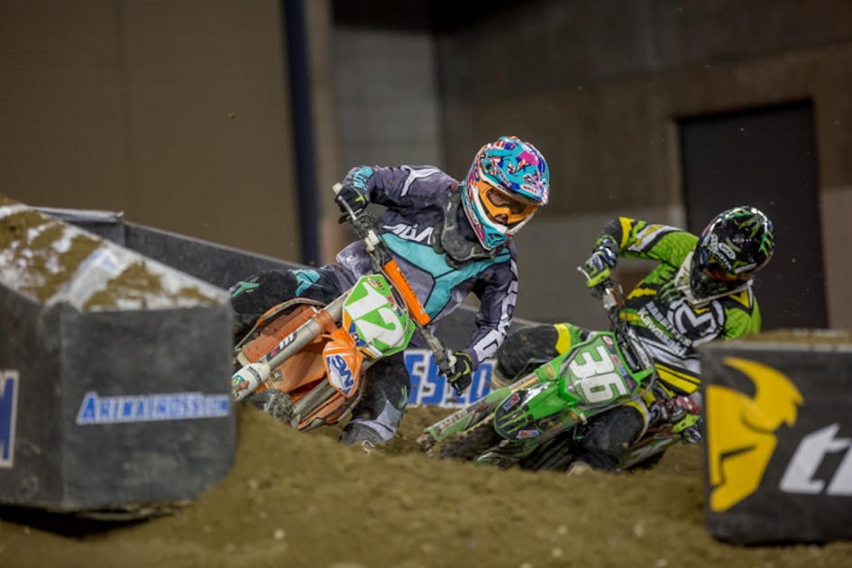 With the Amsoil Arenacross Series wrapping up this weekend in Vegas, let’s give the AX series and boys some love. The series has changed tremendously over the years since Bud Man (Buddy Antunez) and I used to try and kill each other over a seventy-two-main-event season. Gone are the two classes and my beloved Dash for Cash, replaced with a two-moto format, the match races, and some briefcases. Some weekends they race on two nights, while others they only race on one.
