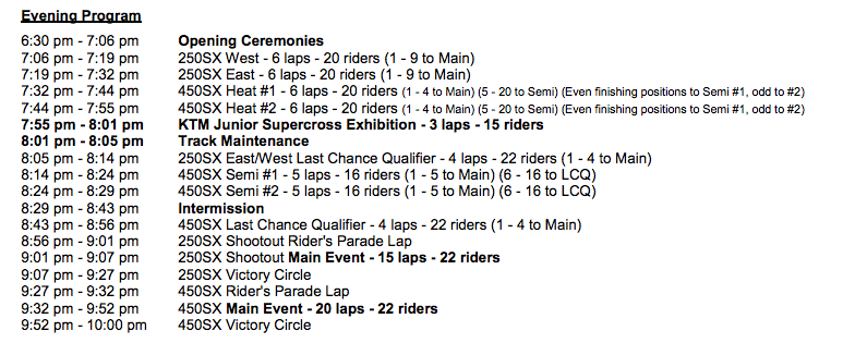 450SX and 250SX - 10:00 p.m. ET - *Live