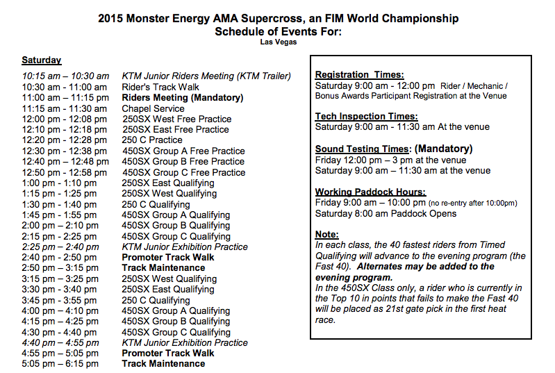 3:50 p.m. - 7:30 p.m. ET (12:50 to 4:30 p.m. local) - www.supercrossonline.com