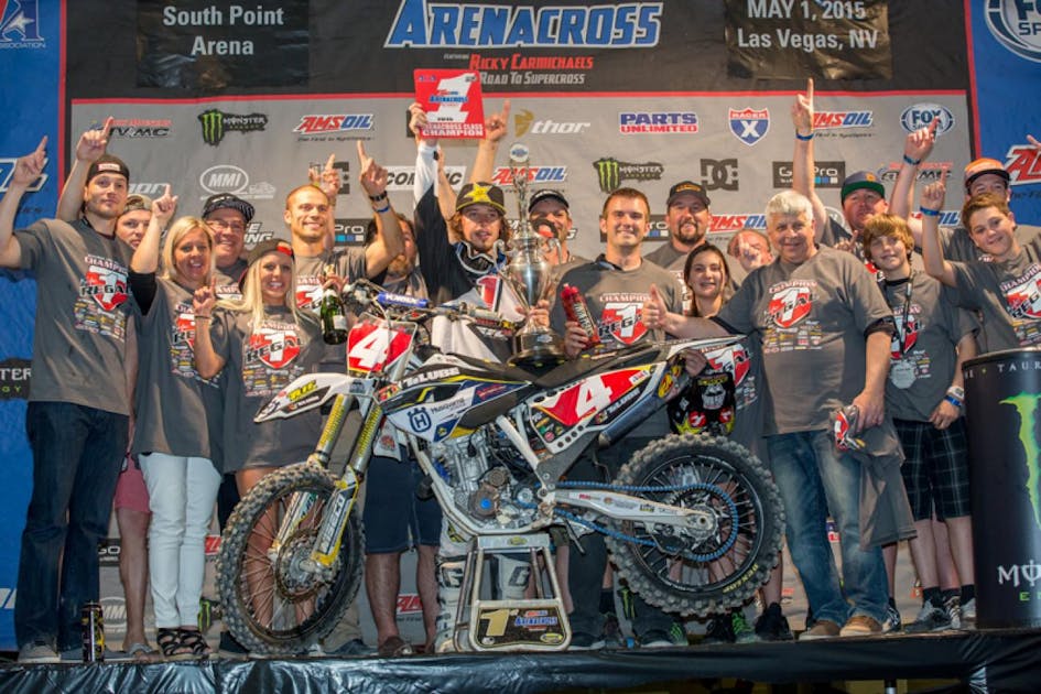 LAS VEGAS - AMSOIL Arenacross, featuring Ricky Carmichael's Road to Supercross, brought the 2015 season to a dramatic conclusion on Friday night with its first ever season finale inside South Point Arena. The sixth and final round of the Race to the Championship featured a tie atop the point standings coming into the evening between Team Babbitt's Monster Energy/AMSOIL Kawasaki's Jacob Hayes and Husqvarna TiLUBE TUF Racing's Kyle Regal, making it the closest title fight in history. When all was said and done at the conclusion of two Arenacross Class Main Events, Regal emerged with his first career AMSOIL Arenacross championship. In the inaugural Arenacross Lites Class East/West Shootout, Preston Plumbing Yamaha's Ryan Breece took the first win of his career with a wire-to-wire performance.