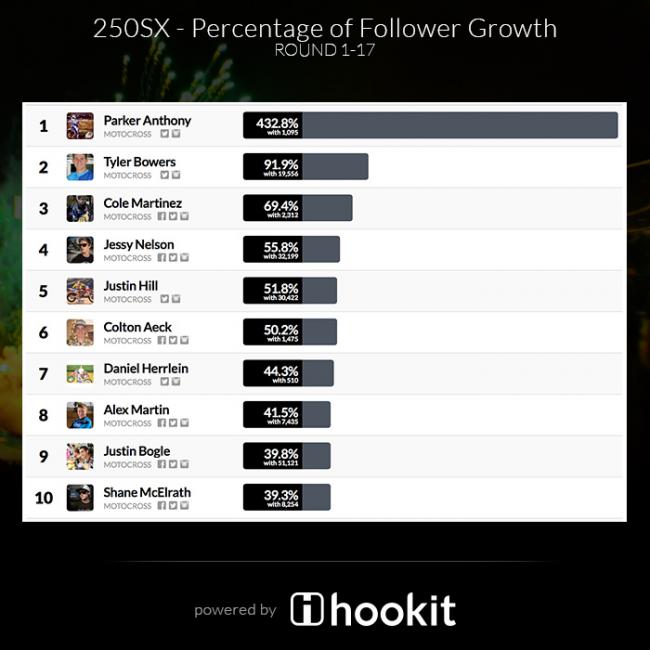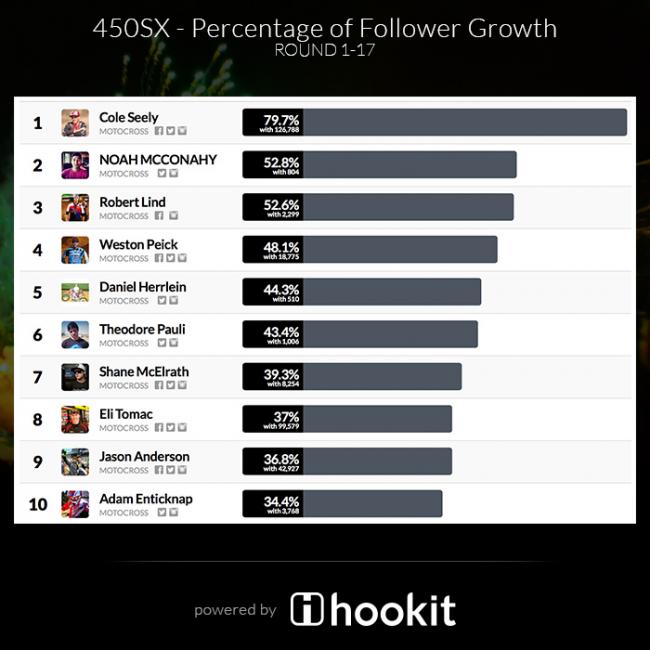 Cole also gained 126,788 new followers in supercross. As we mentioned in Racerhead Weston Peick’s stock also rose this year. Check out the full list below.