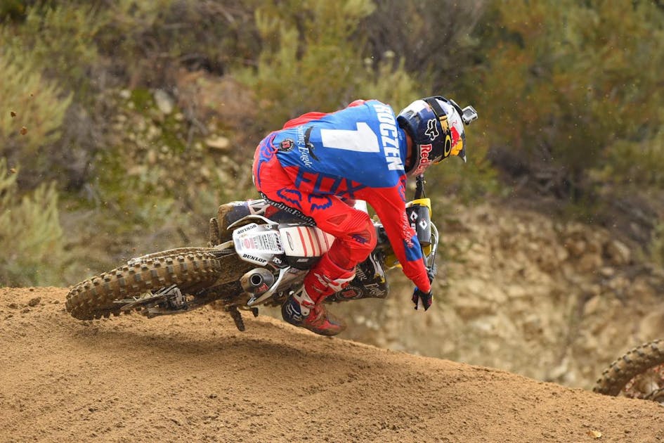 Can Ken Roczen catch a break? After rebounding from last week’s struggles to qualify fastest here at Glen Helen, the champ got together with Jason Anderson on the start of this moto and went down, with the two of them remounting way, way back. Roczen fought back though and clawed his way back up to eighth.