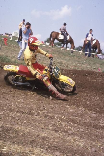 The answer: That's Heinz Kinigadner at the 1982 Unadilla USGP. Congrats to David Leedberg from N. Chelmsford, Massachusetts. David won a set of Renthal green or yellow MX Dual Compound grips.