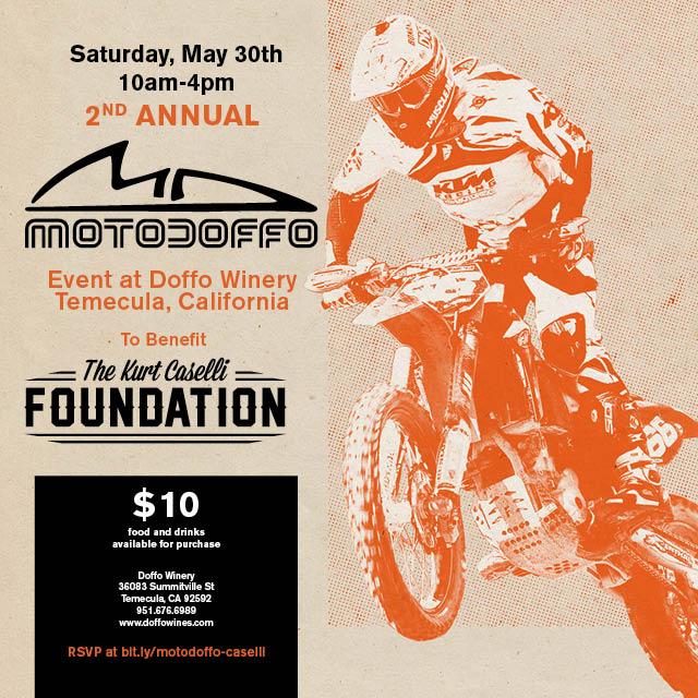 Entry to the event is $10.00 per person. An auction will be held during the day on items from Kurt’s past as well as motorcycle-related items donated from sponsors of the event. Food and drinks will be available for purchase and a special showing of On Any Sunday: The Next Chapter will take place in the afternoon. The custom Roland Sands Caselli bike will be on display and live music from the local band Wine Brew. In addition, wine will be available for purchase with a custom-made Kurt Caselli Foundation logo.