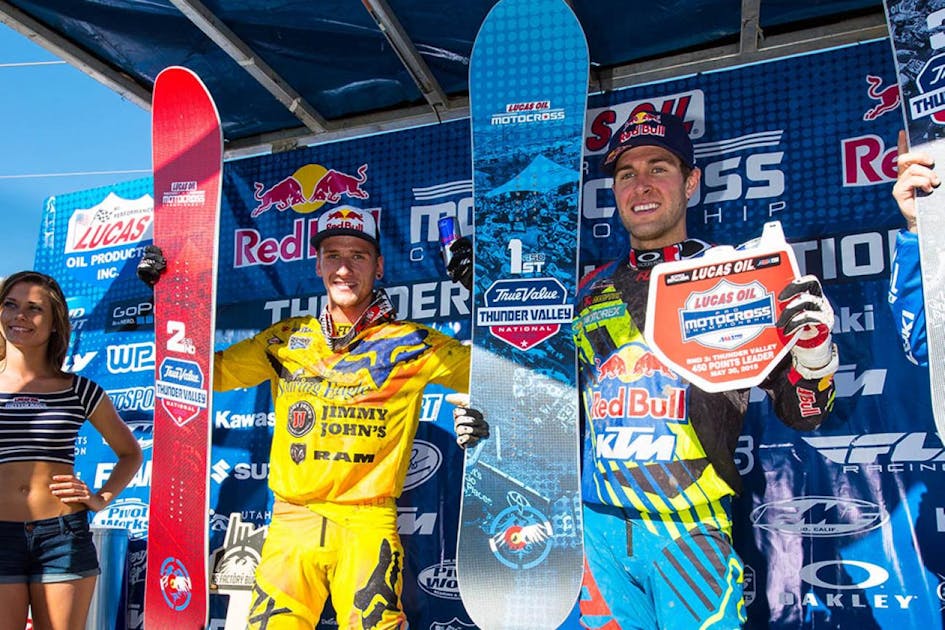 Eli Tomac had the drop on everyone in the 450 Class of Lucas Oil Pro Motocross Championship, and even champions like Ryan Dungey and Ken Roczen weren’t keeping pace. Then, while building another huge lead at the True Value Thunder Valley National, Tomac crashed hard, didn’t finish, and might have ruined his title chances all at once. Roczen appeared headed to the overall win until a flat tire led to two late crashes, and Dungey went past to take the win—and the points lead.