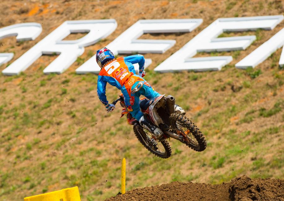 Red Bull KTM’s Ryan Dungey isn’t letting off the gas now. He has the points lead thanks to Eli Tomac’s huge crash last weekend in Colorado, and he further extended it with another overall victory on Saturday at the Red Bull Tennessee National, where he went 1-2 to edge his title rival Ken Roczen. The victory gave Ryan, who sits third on the all-time wins list, his fortieth career win—quite the milestone.