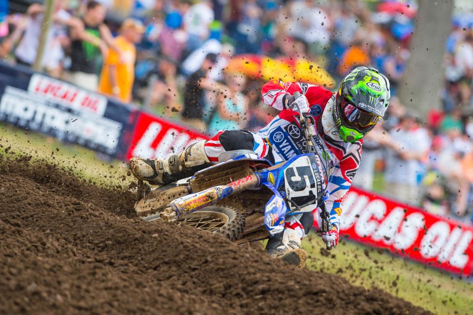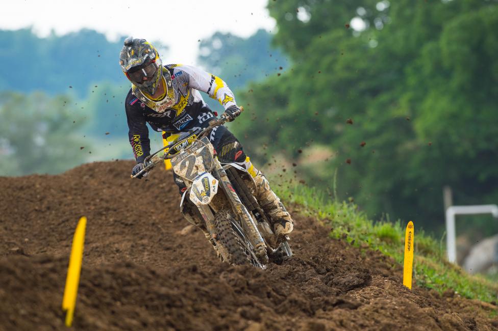 This track, I think it’s been here for a little bit, and it’s just like with any track. My parents have the issue [owning Spring Creek MX in Minnesota]. That topsoil starts to go away a little bit. And then, as the day progresses, it can get more and more slick. You really had to make sure you took some good lines because there was some choppy stuff, and that’s how [Adam] Cianciarulo went down in front of me in moto one. I got up on him trying to get him for second. He got on the gas a little too hard. So I come in, and then there was a slick spot coming out, and it just sent him sideways. As soon as he let off he got ejected. He got right back up and he was okay. I was happy for that. You just had to keep an eye on the track, and you had to change with the track.