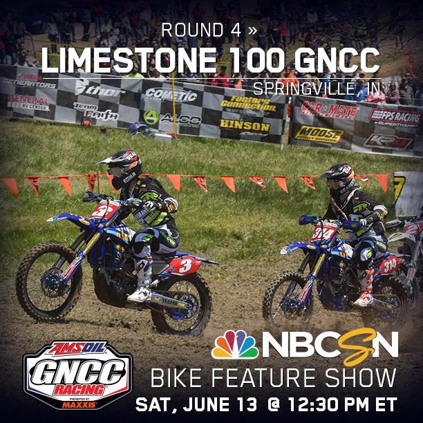 Don't miss the GNCC Bike feature show on NBCSN Today at 12:30 p.m. ET from the Limestone 100, Round 5 of the AMSOIL Grand National Cross Country Series presented by Maxxis.