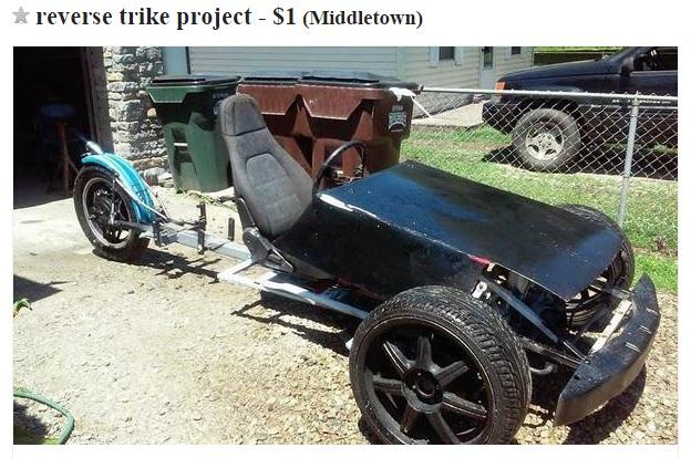 For the longest time it seemed we couldn’t run this column without having something that’d been rattle-canned black. Not because we were searching it out, but because it seems to be the color of choice for people selling worthless piles of debris that used to be motorcycles. Whether that’s because the Craigslist minions think trashed plastic dripping with cheap black paint looks cool, or they just want their machines to be the color of their souls, we’re not sure. Anyway, the next evil trend we spotted was bikes being turned into three-wheelers, but this particular vehicle takes the stereotypical Craigslist cake—it’s a three-wheeled conversion that’s also been sprayed black! This is as stereotypical as a reggae-loving disc golfer who wears flip-flops and board shorts all the time, eats granola bars, and gets busted for firing up a doobie in his hotel room (not that I know any of those dudes).