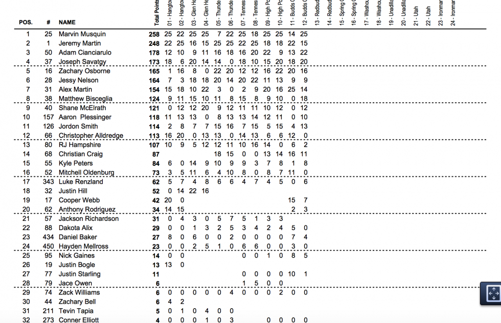 250 Point Standings