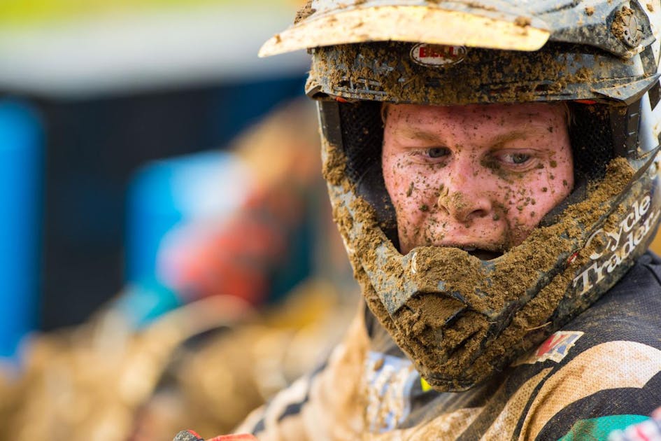 First, Alex Martin became a regular podium guy, and now he’s becoming a legit threat to win races. In fact, he has won now, earning a moto victory at Budds Creek. The CycleTrader.com/Rock River Yamaha rider led until his rear brake went out in the mud, and his brother Jeremy took the lead, only to stall on the last lap, letting Alex sneak through for the W. In the second moto, an even muddier affair, a bunch of riders had crashes and mistakes, and Alex ended up finishing seventh, tying Marvin Musquin on overall points. Musquin, though, got the win via the better second moto. Still, big day for Alex. Here’s what he said during the post-race presser, while a driving rain crashed down outside.