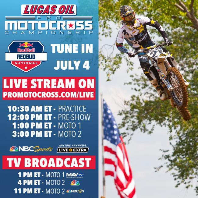If you can’t make it to RedBud in person, make sure you tune in to watch the first motos on MAV-TV or the streaming video here at Racer X Online at 1 p.m., via promotocross.com, and the second motos on NBC (450) at 4 p.m. and NBC Sports (250) at 11 p.m. Follow the hashtag #ThisIsMoto as well as #RedBudMX on your social media for updates and photos all day long.