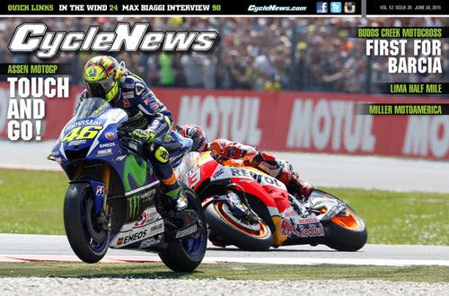 And check out the cover of this week's Cycle News, as Rossi won one of the most thrilling MotoGP races of all time at the Assen TT last week in Holland. It kind of says it all about what happened in the last two turns.