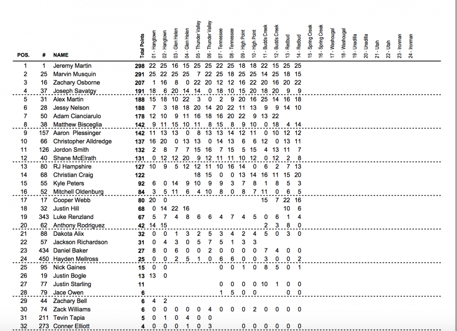 The title fight in 250MX is down to two—defending champion Jeremy Martin and Marvin Musquin. Despite a 7-1 day at Budds Creek, Musquin picked up two valuable points on Martin last week and leads by ten entering the weekend. Meanwhile, in 450MX Ryan Dungey maintained a thirty-seven point lead last weekend, despite an uncharacteristic crash and subsequent finish outside the top ten. Ken Roczen is the defending champion at RedBud and will need a repeat performance if hopes to climb back in the championship chase.
