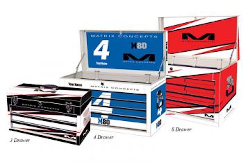 Lightweight, high quality steel construction tool boxes with heavy-duty hardware and hinges. The three, four, and eight drawer models come complete with the Bolt and Clash team style graphics. Each style is available in six color ways and may be customized with your name and number. This is the same version toolbox team GEICO Honda, JGR, and RCH are currently using in the Lucas Oil Pro Motocross Championship