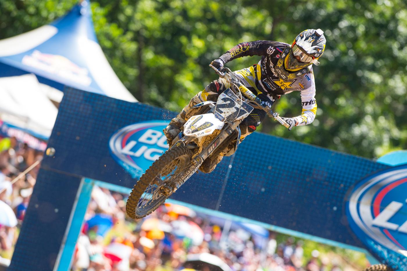 I felt pretty good all day. Good starts. That was good. Even before that, practice times I ended up fourth I think. So it was okay, nothing special. I’m not the best practicer ever. Went into moto one wanting a win, and Ryan [Dungey] had a little bit more than me of course. It was tough. I was trying to get him, but I just couldn’t do it, so it was a little frustrating. Second moto, holeshot, and I don’t remember where Ryan passed me, but he got around me. He pulled away. I closed the gap up, and then he pulled away again.