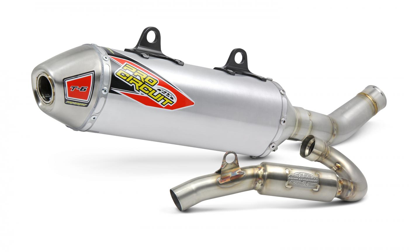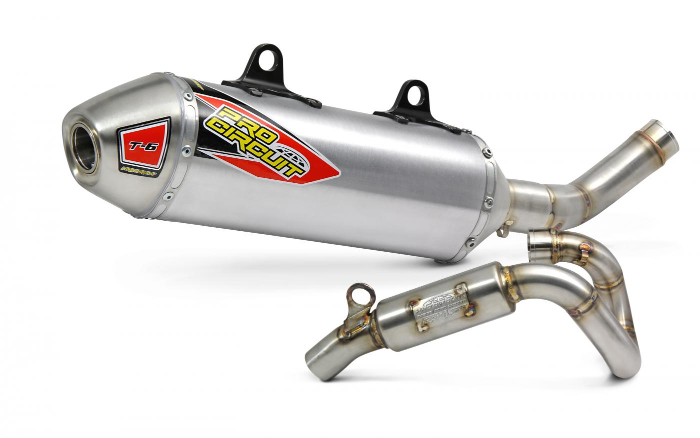 The Ti-6 Titanium Exhaust System is designed for both closed-course and off-road racers. It's the ideal system for AMA Amateur events or any rider or racer looking for winning performance, legendary durability and a professional look. The Pro Circuit Ti-6 System is equipped with a removable USFS approved spark arrestor, making it easy to alternate between off-road and closed-course racing.
