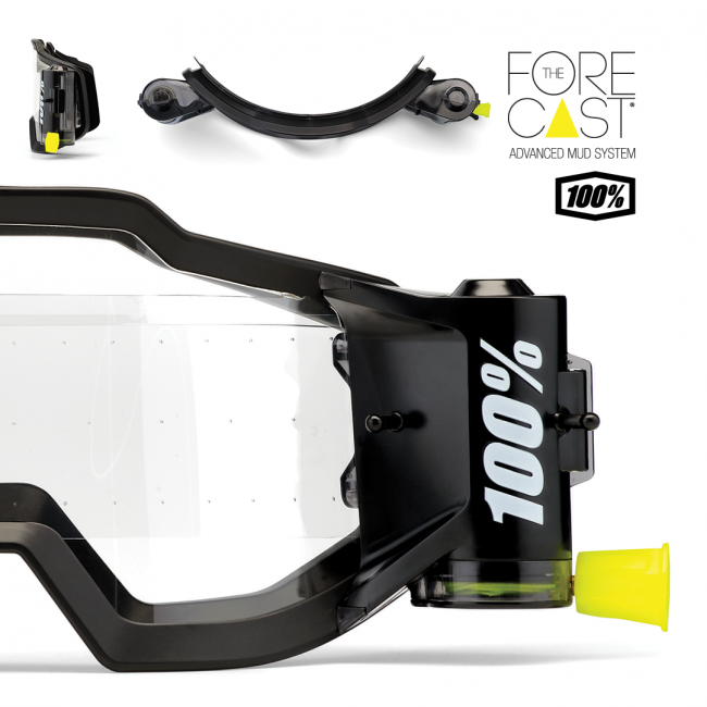 100% is proud to introduce the FORECAST. A revolutionary new film system offering the largest field of clear vision in motocross. The FORECAST is a complete system comprised of working parts that function seamlessly together resulting in the smoothest operating film system available today.