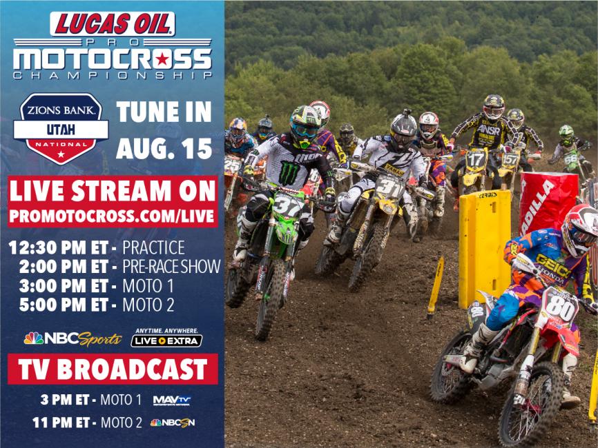 You can watch the Zions Bank Utah National tomorrow live, with first motos on MAVTV and streaming live and free on promotocross.com and the second ones on NBC Sports Network.