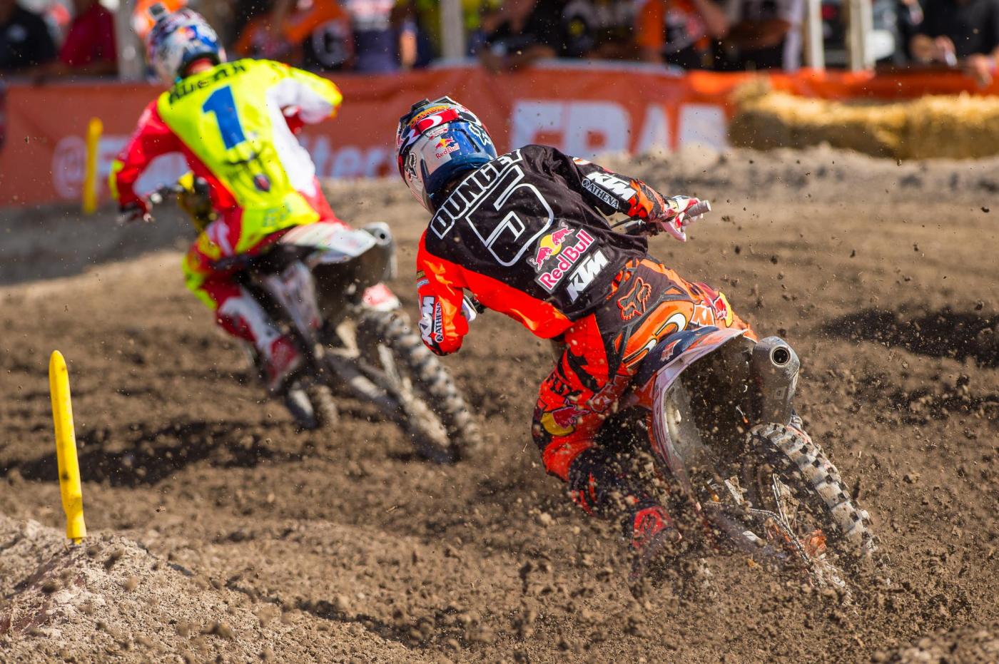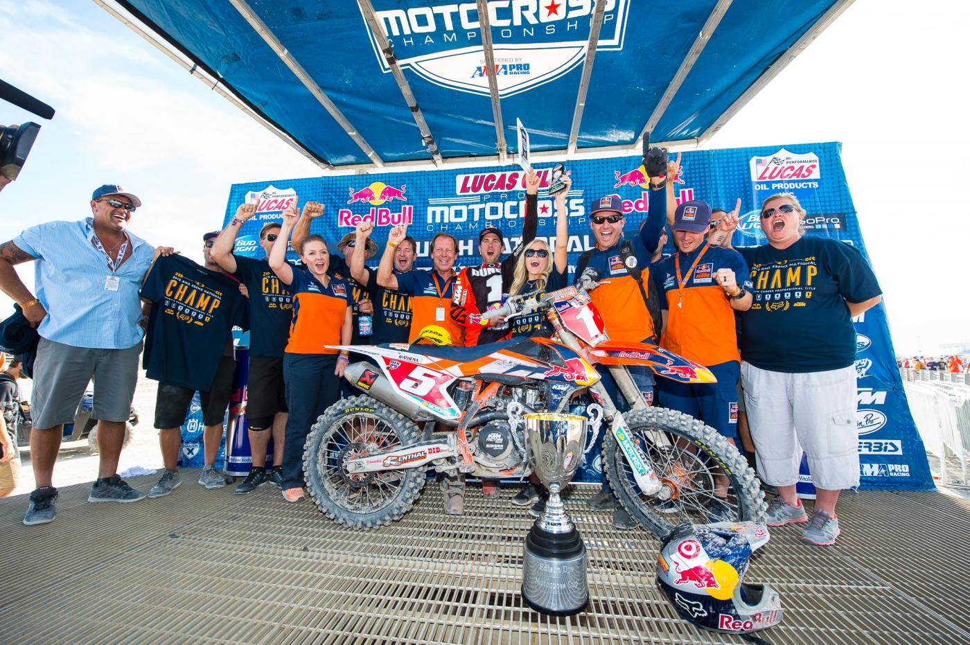 As mentioned above, we knew Dungey was going to clinch the championship today. Sure, he stood a very slight chance of not wrapping it up, but c’mon, did you really think The Dunge was going to flounder? Despite only needing to finish in second place (if Barcia was in first) to clinch the championship, a fact he later confirmed he knew, Dungey continued to push hard for the win. “The opportunity to grab the championship was there, but there were still two motos to be raced. As much as you want the championship, you still have to do your job,” Dungey said afterward. “My mentality coming into this weekend was to get off the gate good and get two solid moto wins. If we could do that in the first moto the championship would be there, but I didn’t want to get caught off guard in the second one—I wanted to go out there and win that one too. It doesn’t look very good if you don’t. It looks like you’re slacking off. Every race and every win is important.”
