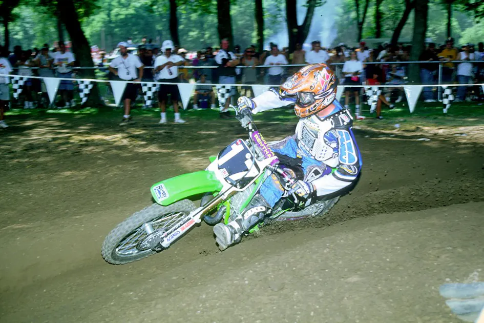 I did seventeen years as a professional racer. I was very lucky to have done it that long and be in one piece. Highlights would be my two 125 championships, in 1994 and 1995. I think the way I started the season off in 1995 and winning six races in a row, that was really cool. Back then they didn’t have a season-ending shootout, but they did have some combined rounds. I think in 1995 they had three of them, and I won all three. So 1995 was a great year. Then, even when I moved up to the big bikes, the way I started in 1996, I was running with [Jeremy] McGrath. I had four second-place finishes before getting hurt. Then my win at the U.S. Open in 1998—that was a pretty crazy win for me. I was coming off a broken leg, and it was a bit strange. Of course, then in 1997, my Atlanta win was huge.