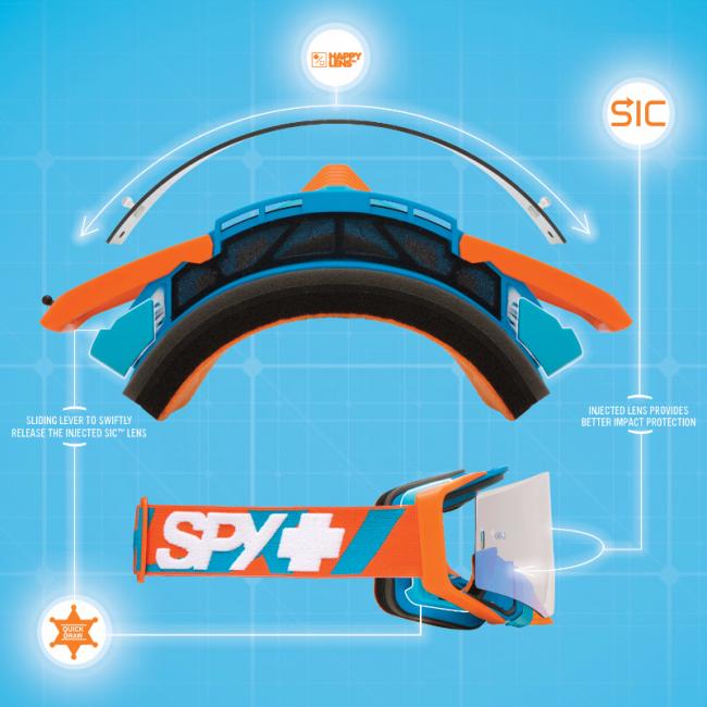 CARLSBAD, Calif.—SPY® is happy to reveal the Ace MX—a midsized goggle available with an injected SIC™ lens and all-new Quick Draw™ lens change system. Outfitted with a sliding lever that allows you to swiftly release and reload the lens, the Ace MX marks the debut of an injected cylindrical lens in a SPY MX goggle and packs more than a few tricks up its sleeve. Featuring SPY’s all new SIC™ (Superior Injected Curve) lens—an injected cylindrical lens that provides better impact resistance and optical clarity—the Ace MX offers solid protection with an easy release.
