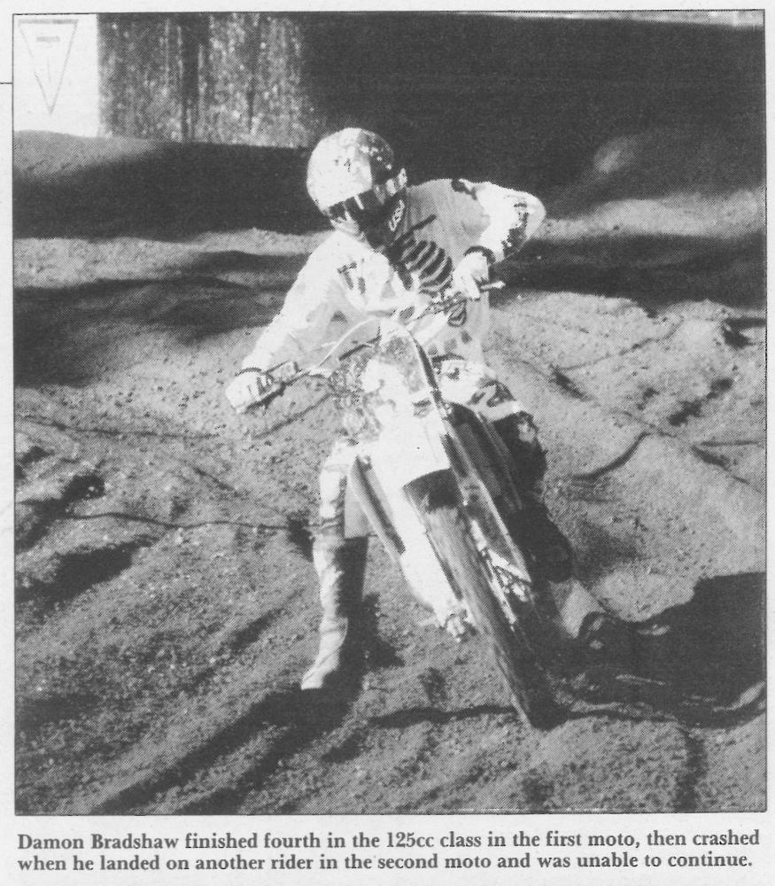 "I was riding the bike as hard as it could go, wide open, and just trying to stay on two wheels," a somewhat perplexed Bradshaw said afterward. His presence was something of a question mark. Bradshaw had not raced the 125 Class in 1990, and the champion was instead Guy Cooper on a Suzuki, who narrowly beat defending champ Mike Kiedrowski of Team Honda for the title. Yet Team USA manager Roger DeCoster once again decided to leave the 125 champ at home—just as he had in ’86, ’87 and ’88—choosing the pure speed of the 250 battle-tested Bradshaw instead.