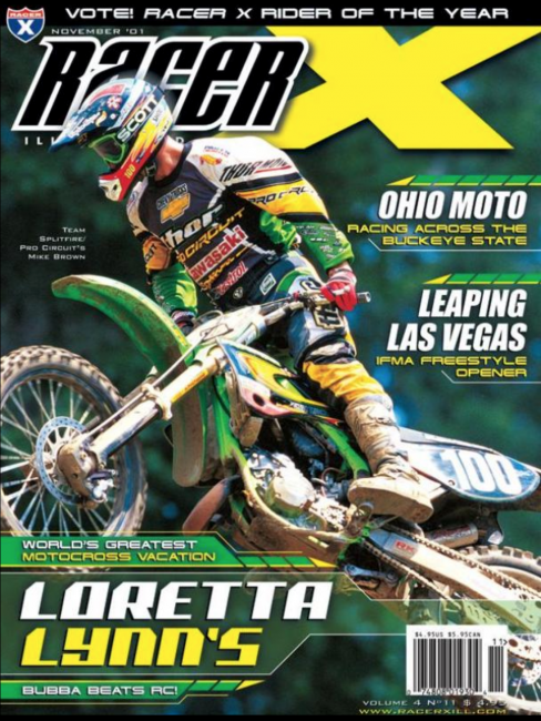 Mike Brown graced the cover nearly three years to the date after Carmichael. After racing in Europe in the 125cc FIM World Motocross Championship in 2000, Brown returned to the States in 2001 and landed a ride with Mitch Payton. Later that summer, he would go on to win the 125cc AMA Motocross title—the first of his career. Now, all these years later, at 43 years of age, Brown is still competing—winning Gold at X Games in Austin this year and battling for a GEICO EnduroCross Championship with Cody Webb and Colton Haaker. Simon Cudby photo from a shoot he did specifically for this front page.
