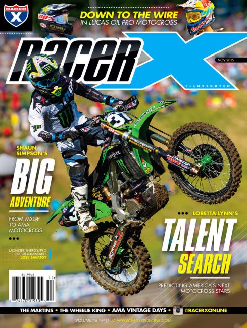 Last week the November 2015 issue of Racer X Illustrated was released with Monster Energy/Pro Circuit Kawasaki’s Joey Savatgy on the cover. Savatgy enjoyed a career year in his first season under Mitch Payton’s watchful eye, finishing third overall in the 250 Class in Lucas Oil Pro Motocross, and grabbing his first career win at the Red Bull Unadilla 250 National in August. With Adam Cianciarulo, Tyler Bowers, and Arnaud Tonus missing all or most of the summer due to injury and illness, Savatgy became the team leader under the Pro Circuit tent beside rookie Chris Alldredge.