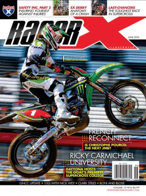 Christophe Pourcel won a second straight East Region Lites Championship in 2010, and coulda, woulda, shoulda won the outdoor championship later that summer, before losing out to Trey Canard after crashing at the finale and breaking his arm. This was the only cover Pourcel got as a Pro Circuit rider, and Steve Cox shot it in practice at the Daytona SX.