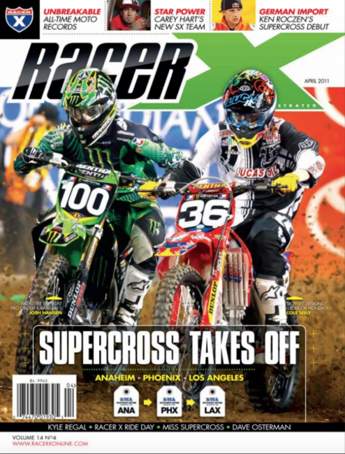 Josh Hansen splits the April 2011 cover with then-Lucas Oil/Troy Lee Designs rider Cole Seely. Both Hansen (3) and Seely (2) would win multiple races that year but lose out on the title to another Pro Circuit rider—Broc Tickle—who certainly deserved a cover for that success, but we just didn’t have the right shot, so we waited and got him on there later when he began racing with RCH Racing Suzuki.
