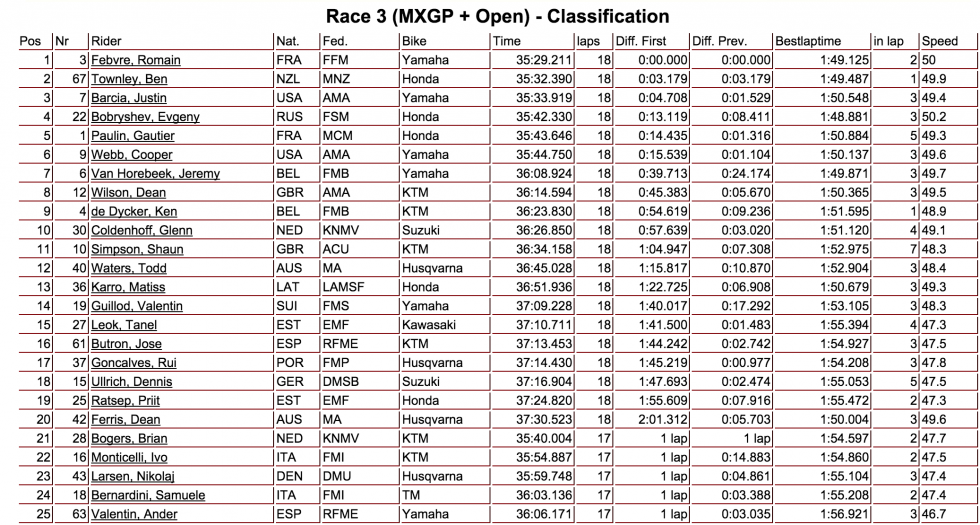 In contrast, Belgium's day started bleak but they clawed back in the final moto with Jeremy Van Horebeek seventh and Ken de Dycker ninth to snag the final podium spot.