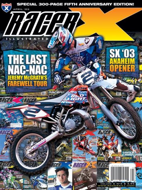 For our fifth anniversary issue, we decided to do something that hadn't been done yet: we made an issue themed around the 1990s. This all coincided with McGrath hanging up the boots suddenly just days before the 2003 season began. We grabbed a shot of him doing a nac-nac on his ill-fated KTM 250SX experiment. Yes, McGrath had retired, so this was supposed to be the last nac-nac….