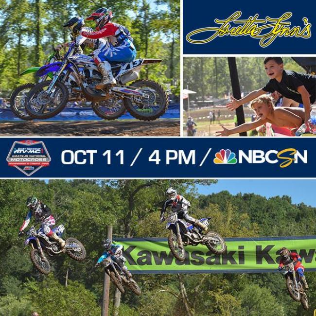 This Sunday, October 11 at 4 p.m. EST, NBCSN will air the first feature show from the 2015 Rocky Mountain ATV/MC AMA Amateur National Motocross Championship, presented by AMSOIL, which took place July 26 through August 1 at the historic Loretta Lynn Ranch in Hurricane Mills, Tennessee.