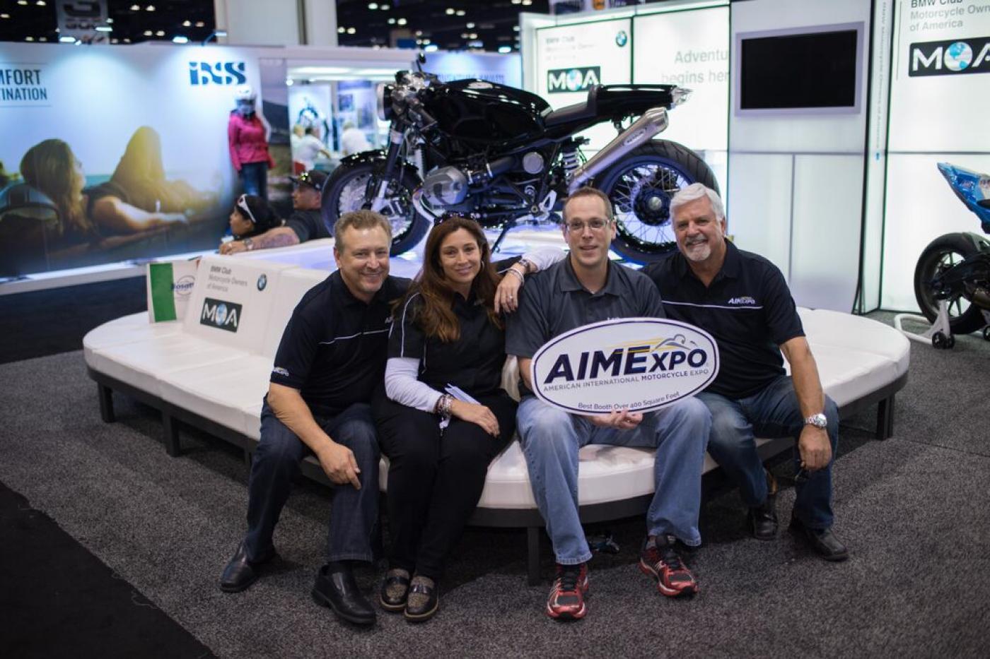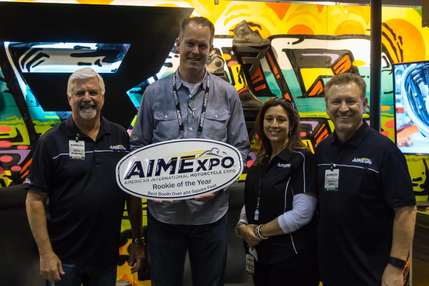 For the second year, AIMExpo handed out booth awards to exhibitors that went above and beyond with the design of their respective booth area. Four different awards were given—a rookie award for a large and small booth and a veteran award for a large and small booth—with exhibitors being scored on booth design, branding, creative design, interactive experience, social media, staffing, and overall appearance. This year's rookie winner for a booth under 400 sq. ft. was Standard Motorcycle Co., while the rookie winner for a booth 400 sq. ft. or larger was Bates Footwear. In the returning exhibitor class, the booth under 400 sq. ft. winner went to Forma Boots, and the 400 sq. ft. or larger booth taking the top honors was BMW Motorcycle Owners of America.