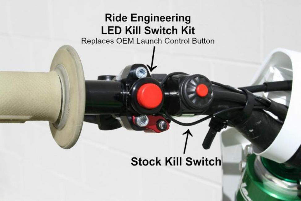 Costa Mesa, CA - Ride Engineering, the leader in aftermarket performance products, is proud to release another application for our LED/Kill Switch Kit. This kit features incredible integration replacing the large launch control device on 2012 and up KX models and clears space on the handlebars.