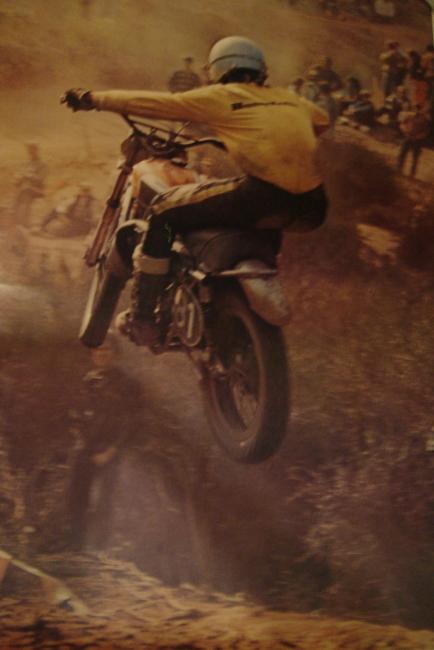 A reader named Travis sent us a photo of a poster he's had for years but can't quite figure out who is riding the Husqvarna (circa 1970, probably Saddleback). Anyone know who this is?