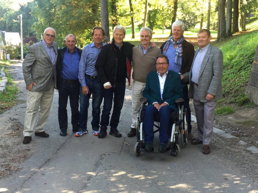 The Man himself, Roger DeCoster, posted this photo on his Facebook page of the recent Namur reunion to honor Andre Malherbe, from the paved road near the Monument Café. That's where Hakan Carlqvist famously stopped for a chug of beer on his way to a win at the old Citadelle circuit in the eighties. (From left: Sylvain Geboers, Harry Everts, Roger DeCoster, Håkan Andersson, Michele Rinaldi, André Malherbe, Jean-Claude Laquaye, and Joël Robert....)