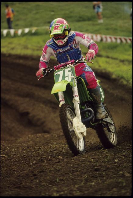 Answer: That's John Dowd at the 1990 USGP. Congrats to Christopher North of Lenox, MA. Chris won Renthal moto handguards.