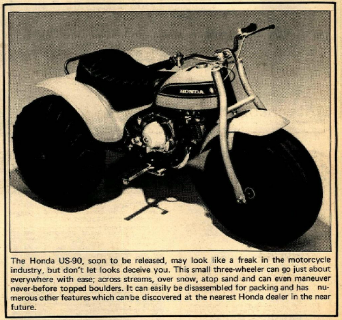 The first mention of Honda's new ATC-90 in Cycle News, way back in 1970…. Nick McCabe celebrates the anniversary of this launch every year like it’s the Fourth of July.