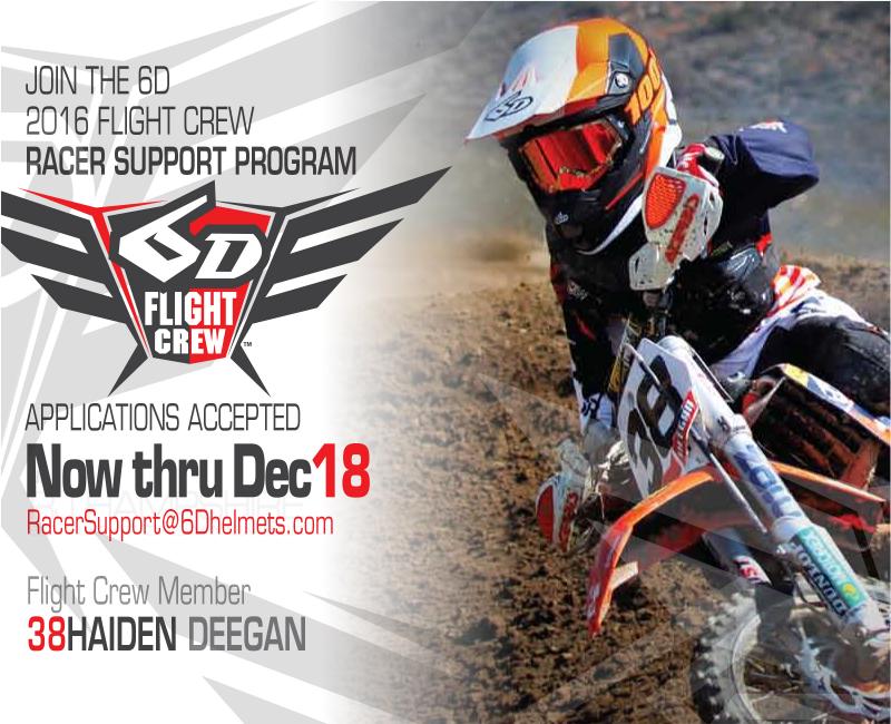 Brea, Ca - 6D Helmets is pleased to announce the return of our 6D Flight Crew Racer Support Program! This program is activated exclusively through 6D "Flight Crew" dealers. The 6D Flight Crew program is designed to help out the racer that is competing week in and week out at both the local and national level.
