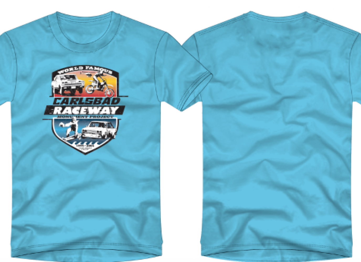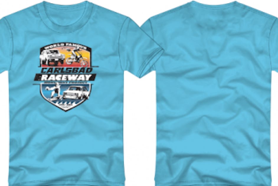 You can be a part of the project and take home a brand new piece of Carlsbad Raceway history. T-shirts are available in blue and white in sizes M through XXL. Availability is limited, so don't wait to place your order!