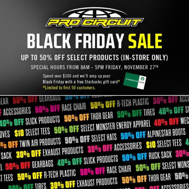 Pro Circuit is holding a Black Friday sale that will feature up to 50 percent off select products (in-store only) on Friday, November 27.