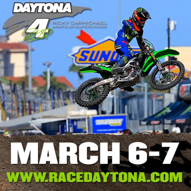 Sign up now for the 2016 Ricky Carmichael Daytona Amateur Supercross at racedaytona.com. Spots are going fast, don’t miss this opportunity to race in the World Center of Speed at Daytona International Speedway.