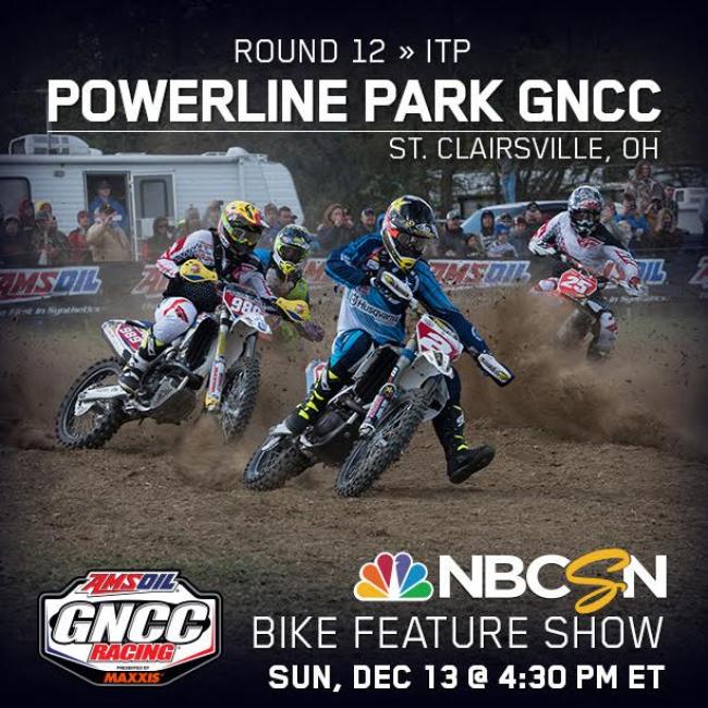 Don’t miss the GNCC Bike feature show on NBCSN this Sunday, December 13 at 4:30 p.m. ET from the ITP Powerline Park, Round 12 of the AMSOIL Grand National Cross Country Series presented by Maxxis.