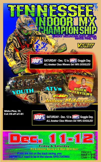 The Tennessee Indoor MX Championship visits the Smoky Mountain Arena in White Pine, Tennessee this Friday and Saturday.