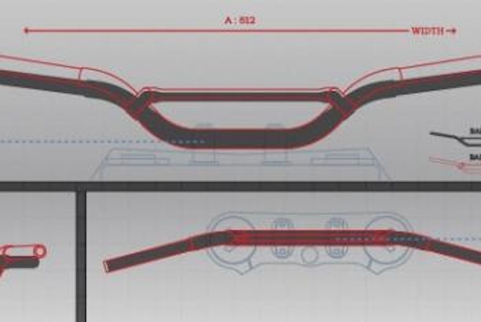 Worksfit™ allows the user to choose their reference handlebar, maybe the OEM bar which came on their specific model, and then choose another bar which they wish to compare it to, and then overlay the two images to see the visual differences in height, sweep, width etc. A complete list of the key dimensions will be shown and the user will get 3 different views to analyze.